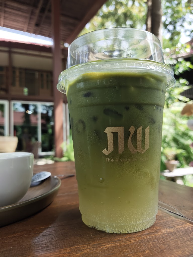 แต่เค้กที่เลิศเลอขนาดนี้ ก็ต้องมีคู่หูที่สมศักดิ์ศรีใช่ไหมครับ? ผมเลยสั่ง ชาเขียวเย็นๆ มาดับกระหายจากการเดินทาง นี่สิครับของจริง! ชาเขียวสีสวยสดใส ที่ชงมาอย่างเข้มข้น ได้รสชาติชาเขียวมัทฉะแท้ๆ ที่มีความหอมลึกๆ ติดจมูก (Earthy) และมีความหวานที่สมดุลกำลังดี ทำให้มันสดชื่นอย่างไม่น่าเชื่อ! มันคือคู่หูสายเซนที่เย็นเจี๊ยบ และคู่ควรกับเค้กชิ้นเอกนี้ที่สุด!