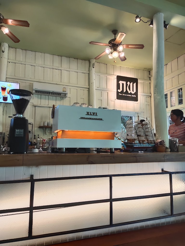 สวัสดีคร้าบบบ! นักล่ารสชาติและนักรบแห่งการเดินทางทั้งหลาย! สากล ไกด์นำทางสู่ความอร่อยของคุณ กลับมารายงานตัวจากท้องถนนอีกแล้วครับ! ทุกคนก็รู้ว่าผมออกตามล่าของอร่อยอยู่เสมอ และจะบอกอะไรให้นะครับ...ทริปล่าสุดของผมเนี่ย ผมไปสะดุดเจอกับโอเอซิสที่แท้จริง! สถานที่พักผ่อนหย่อนขาทสำหรับนักเดินทางและชุบชูต่อมรับรสของผมให้กลับมามีชีวิตชีวาอีกครั้ง ที่นั่นคือ ภพ The Riverside Cafe ครับ!
