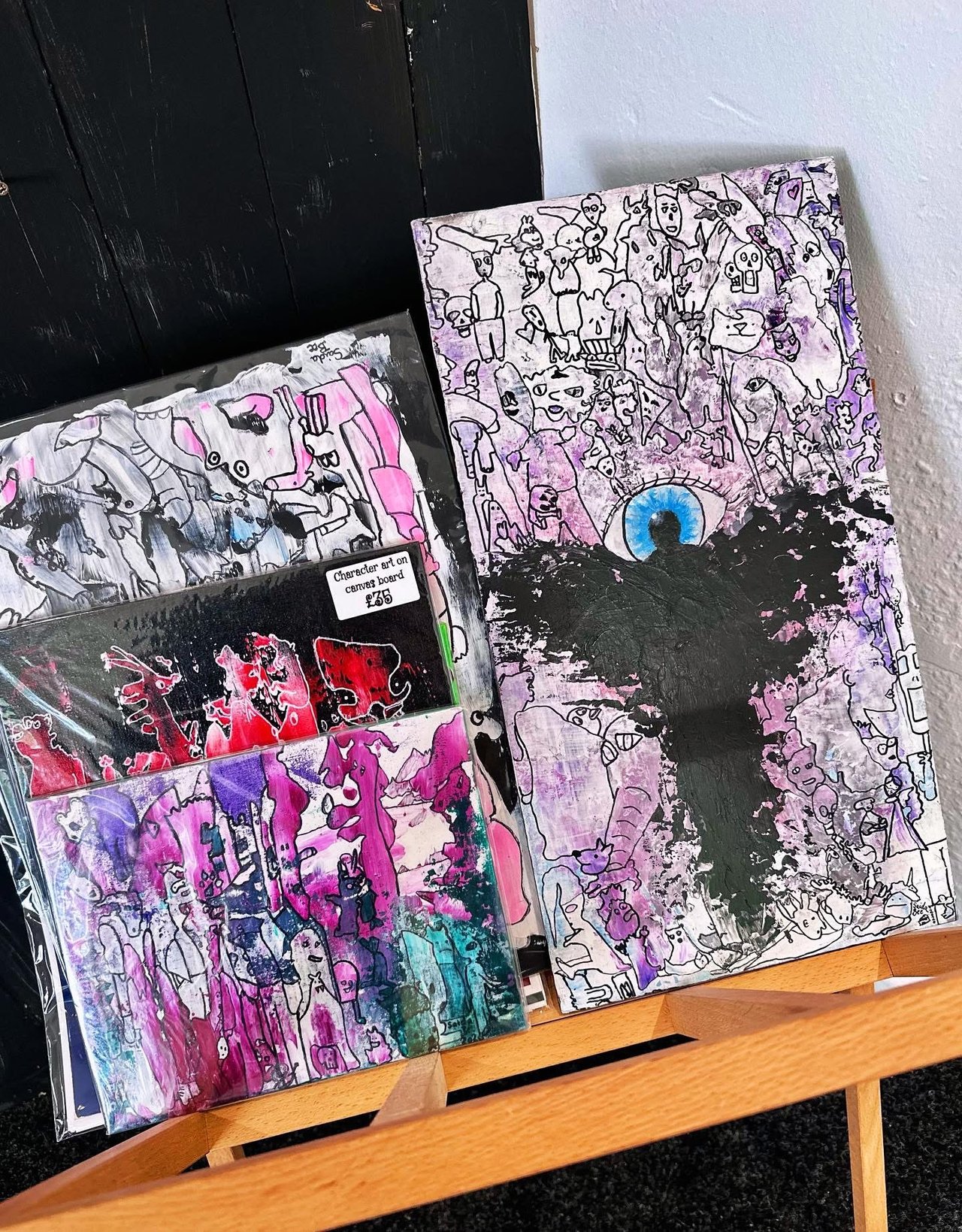 I have been holding an exhibition with my friend over the weekend. We chose the theme rainbow gathering as it allowed us flexibility to combine our different styles and have freedom whilst, still having a theme to work to. It was meant to be a much bigger exhibition with 5 artists but it ended up with just the two of us so we had to do a lot in 2 weeks.