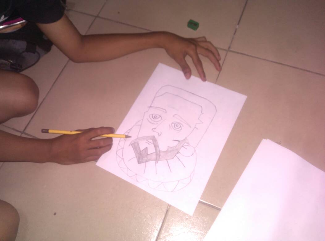 Hola amigos aquí les dejo unas fotos del proceso creativo, del dibujo de cervantes, realizado por mi sobrino Johan de 8 años. que es todo una artista.