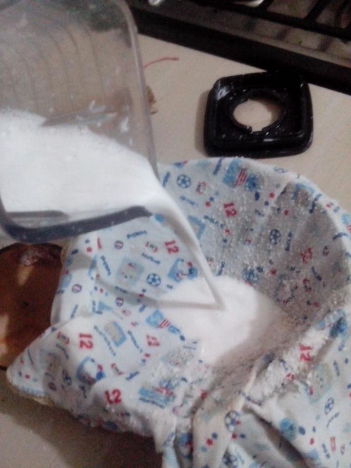 La manera que lo hice es licuar el coco rayado con un poco de agua en luego con una telita limpia hechar el coco licuado y exprimirlo.