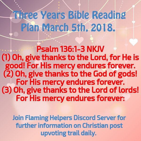 Three Years Bible Reading Plan for today March 5th, 2018.