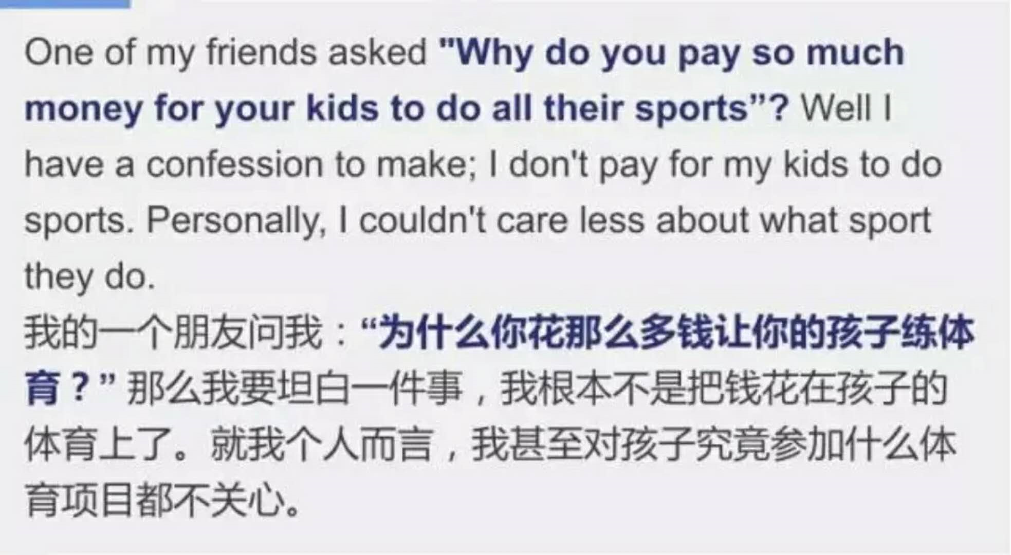 为什么花那么多钱让孩子学各种体育项目? 这位美国老爸的回答非常赞。luffyone (25)in #cn • 7 years ago 孩子是属于户外的,他们是热爱运动的,带他们认识到这些的,只有家长,而尤其以爸爸为主,以身作则的威力是巨大的。下一次,当你想把孩子的目光从iPad上移开的时候,最好的办法就是跟他说:走,出去玩。