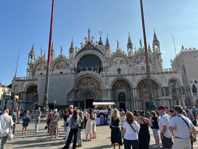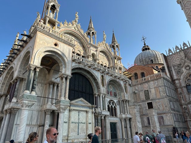 San marco 广场的大教堂可是非常出名的,广场上好多人在那里拍照。广场的四周都是各种不同的商店,一看就是旅游旺区。因为这里都是水城,为了减少水压,在涨潮的时候,整个广场居然有很多地方都有出水口,好多地方都被水淹。随着气候变暖,不知道威尼斯会不会有天淹没在水里?