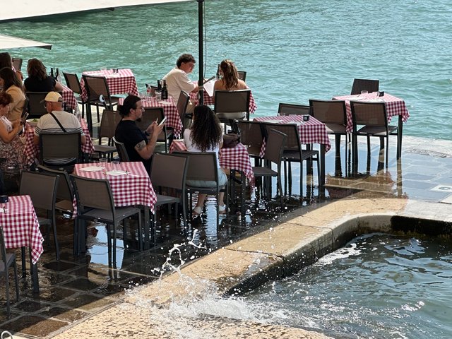 第一天晚上我们早早就睡去,第二天一早酒店餐厅一开,我们前几位排队就进去吃,吃完就准备坐酒店的水上穿梭吧去市区逛。 酒店每隔20分钟一趟船,方便是蛮方便的。只是,第一天在从火车站到酒店等船扫兴后,某生坚决不肯出去。那就留着第二天一起逛吧。我们在威尼斯就两晚,所以,第二天就是我们暴走的时候。