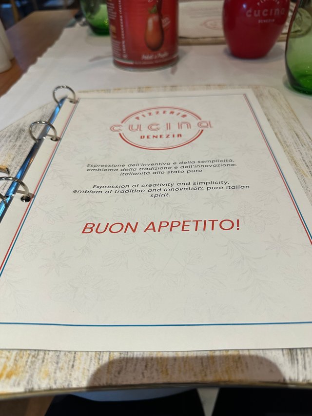 我们在威尼斯的第一天晚上,就选择在酒店里的一间餐厅吃饭。我们也不知道原来这个餐厅晚餐只供应比萨饼的。但是既然都坐下来了,也就不好意思站起来离开。