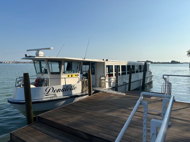 从火车站下车等船,用了两个多小时终于到了酒店水上穿梭巴的码头。正好赶上马上就要开船的班次。在船上跟一些人聊天,基本上都是美国人。她们都是直接从机场到酒店的,所以并没有我们这样等船的经历。对于我们来说又是一个经验教训。她们跟我们说酒店水上巴士上下客的地方很特别,倒是让我们一下子好奇起来。