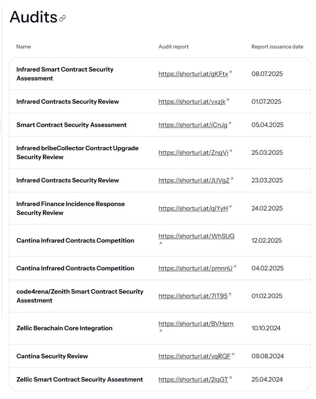 最近2份审计报告分别发布于2025年7月,审计机构分别为Cantina和Zenith。
