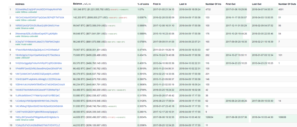 링크 : https://bitinfocharts.com/top-100-richest-bitcoin-addresses.html