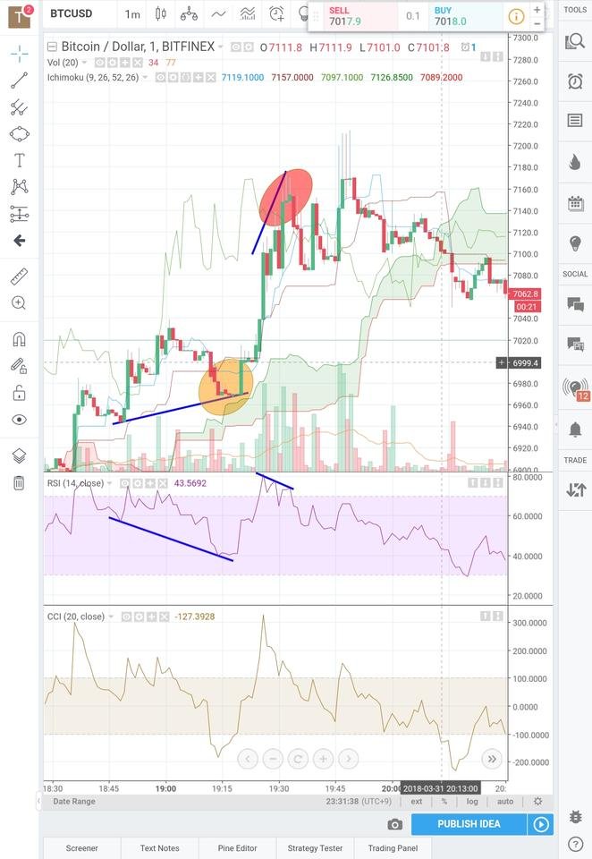 다이버전스와 거래량을 모두 체크하며 포지션을 잡습니다.