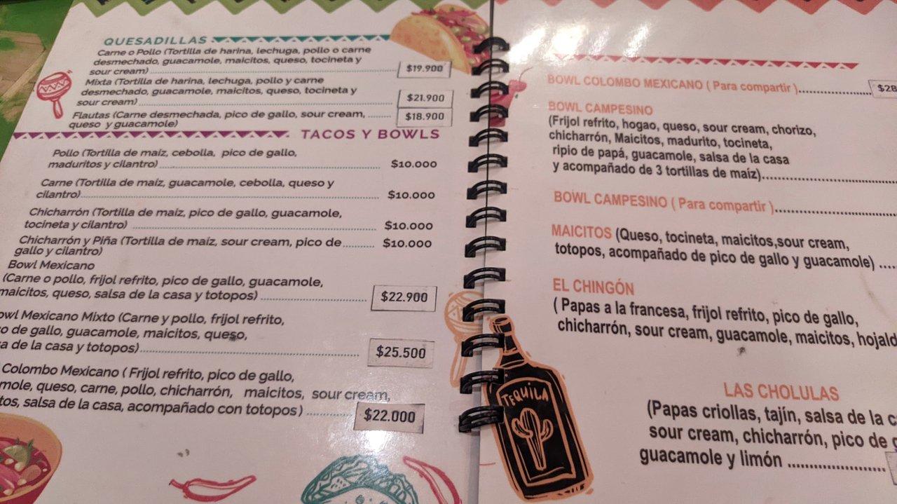 Al llegar fuimos bien recibidos con una excelente atención. Nos ofrecieron las cartas de menús, allí se podían encontrar quesadillas, papitas de todas las clases, burritos,bowl campesino,etc. En fin