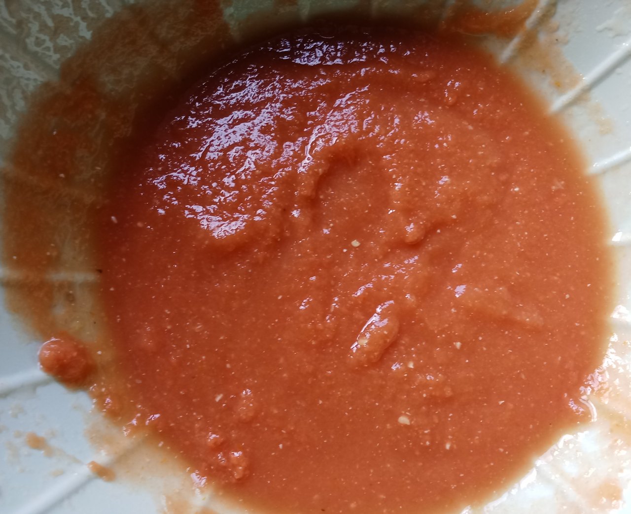 In preparation of homemade ketchup with garlic, I did not experience any difficulties because I followed my teacher's instruction on how to do it tactfully.
