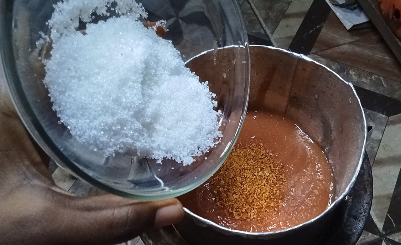 I added half a cup of vinegar to it and kept stirring it slowly with a spoon so that it does not burn from the bottom and I also kept the flame low.