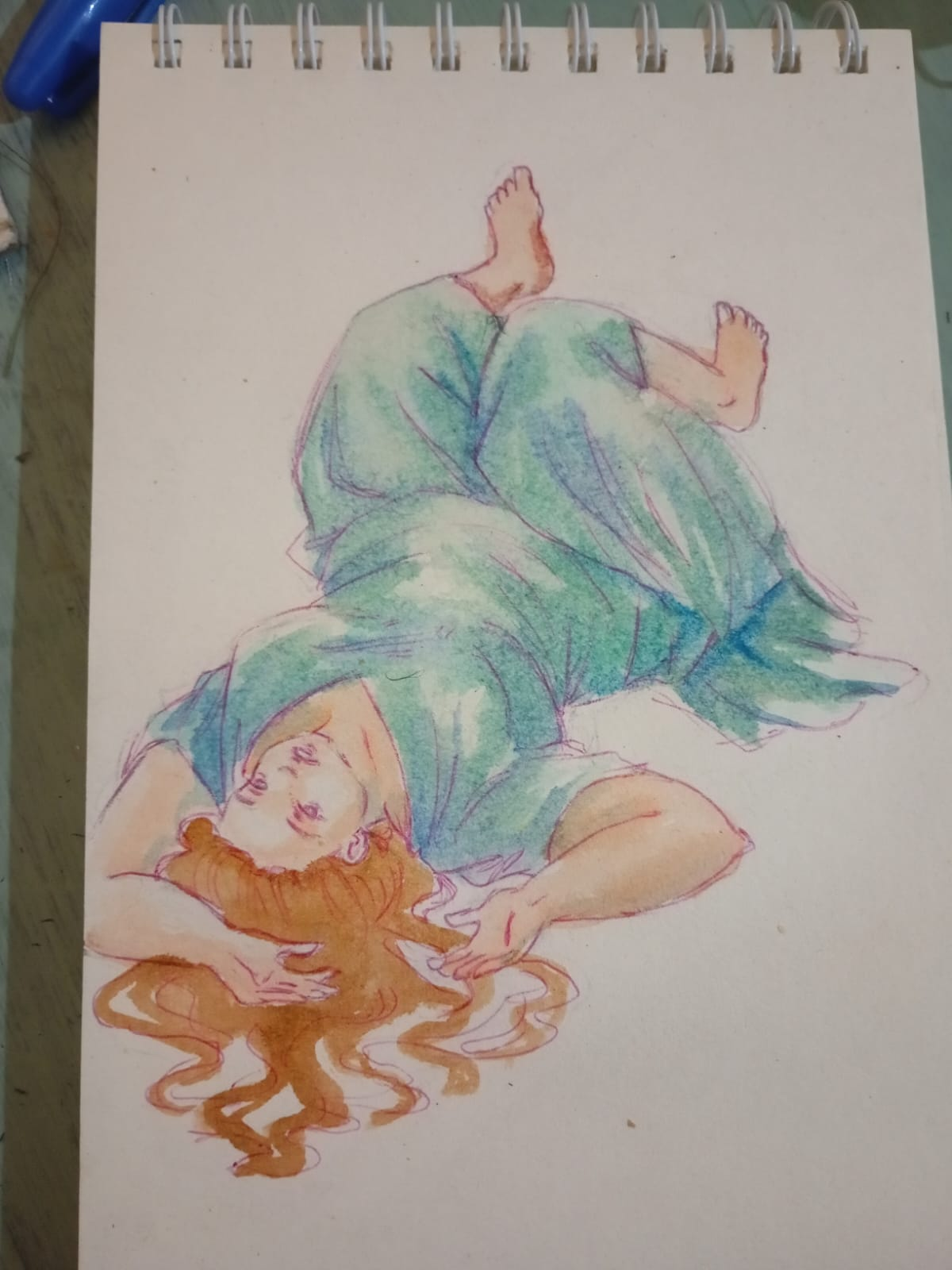 Inicialmente hice un boceto de una mujer en una pose que para mi fuera difícil, además la idea era NO usar una referencia para el dibujo.