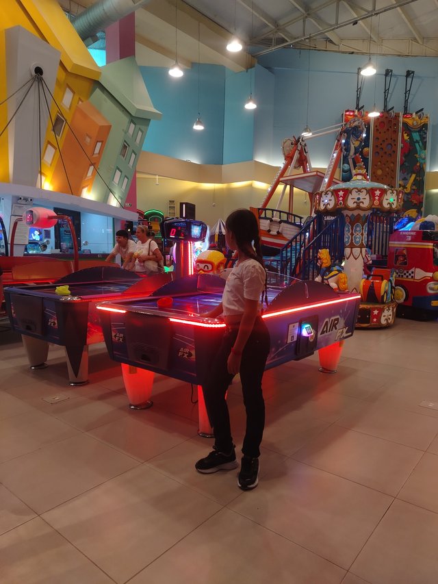 Mientras le tome una foto cuando ella observaban tranquilamente los diferentes juegos, luego mí bebé le fue indicando dónde jugar hasta que ella decidiera por si sola que máquina quería usar.