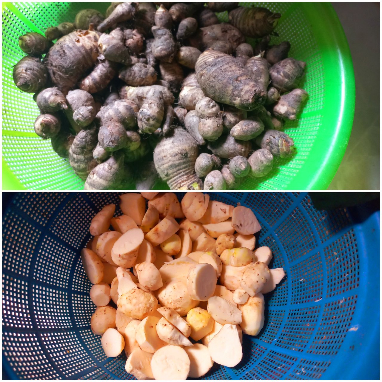 Bueno, mi madre estaba cortando verduras para la merienda. Entre ellas estaba el kachurmukhi, que está buenísimo. El kachurmukhi se cocina con camarones. Por eso me senté y elegí los camarones. Mi padre trajo camarones del mercado. Estaban tan frescos que se veían preciosos. Es delicioso cocinar cualquier cosa con camarones. Mientras tanto, freí tilapia al estilo barbacoa. Me gusta mucho. Por eso la freí así. En fin, mi madre cocinó después. Después de comer y beber, descansé por la tarde.