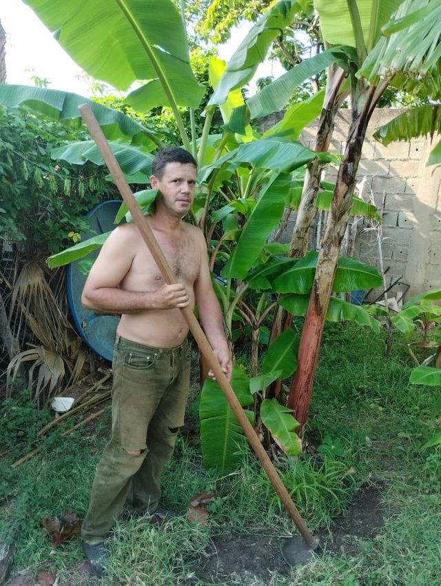 Una mañana de estas al levantarme me encontré a mi esposa en el patio, justo regando las plantas y me uní a ella para limpiar el pie de cada mata, pues estaban llenas de montes lo que impide su buen desarrollo, gracias a Dios, agua nos les falta, ya que aquí en casa somos un equipo y nos compartimos el trabajo.