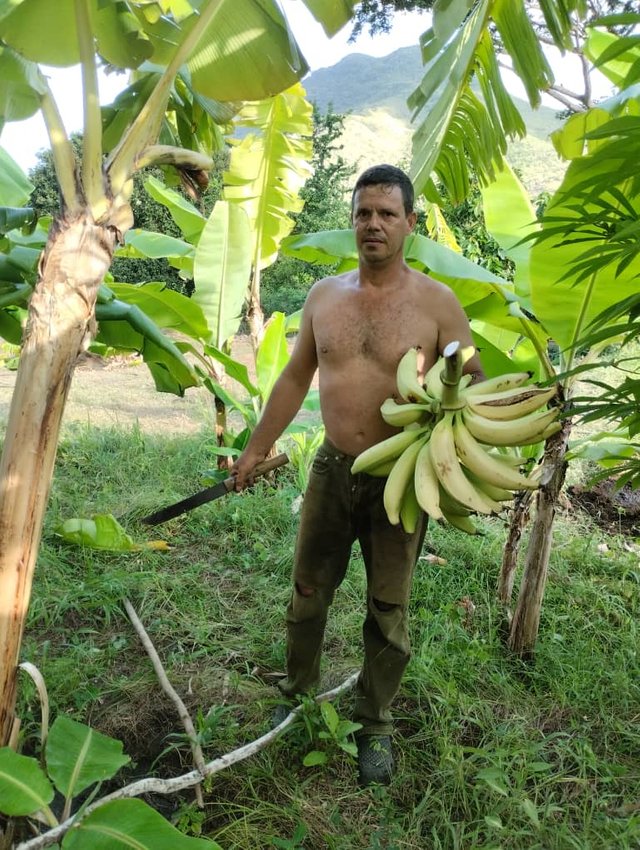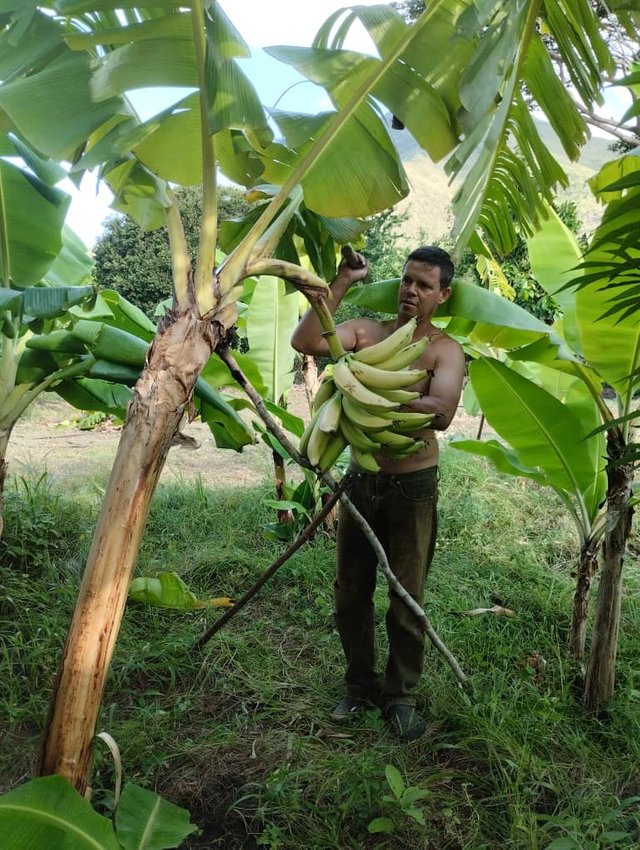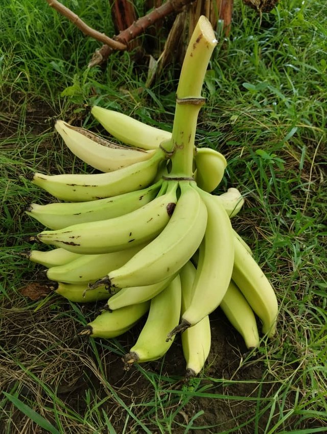 En una mata de plátanos había un racimo ya listo para ser cortado, así que con la ayuda de la herramienta adecuada lo hice, en realidad eran unos plátanos enormes y gruesos, el trabajo ahora era esperar que se madurararn para nuestro consumo. Que por cierto ya lo hemos probado y son muy ricos.