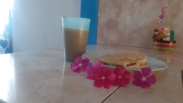Posteriormente bueno van al budare, lo que limpio muy bien com aceite y allí si las coloco a cocción con fuego lento para que se le añanda esa suavidad a la arepa, hoy me permití comer esta arepa con mortadela de pollo, tenía queso llanero pero opté por no agregarle. También la acompañe de un baso de jugo de guayaba divino todo.