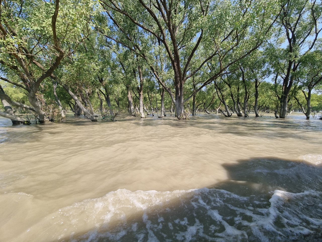 Beautiful view of the garden being washed away by the tide while riding a boat