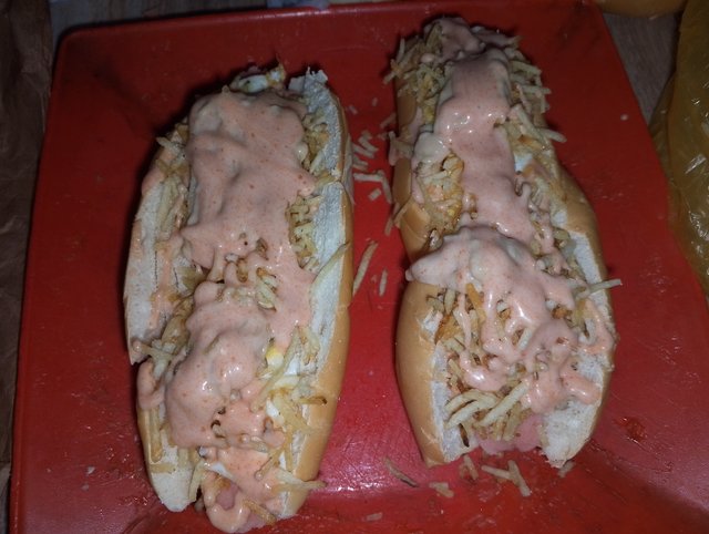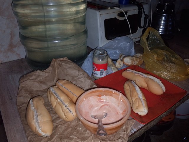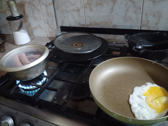 Cuando mi madre terminó su ocupación con el tema de las tortas, llegó la hora de cenar así que procedimos hacer la comida y mi mamá pues tenía planeado hacer los perros calientes ya que había traído los panes y las demás cosas del centro. Así que puse a hervir el agua para la salchicha y a freír los huevos para agregarle al pan. Luego mi mamá los relleno con la salchicha, papás fritas el huevo y las salsas.