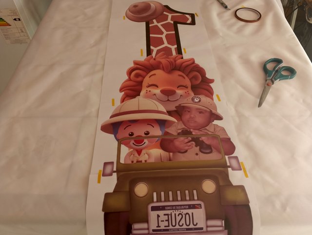 Se inició temprano con los preparativos ya que habían muchas cosas por hacer y no querían dejar todo para última hora para poder estar mas tranquilos y sin mucho afán. Mi papá inició con la sublimación del pendon para la decoración, el pendon debía ser redondo y llevar la temática de la fiesta pero con un diseño libre y echo por mi papá.