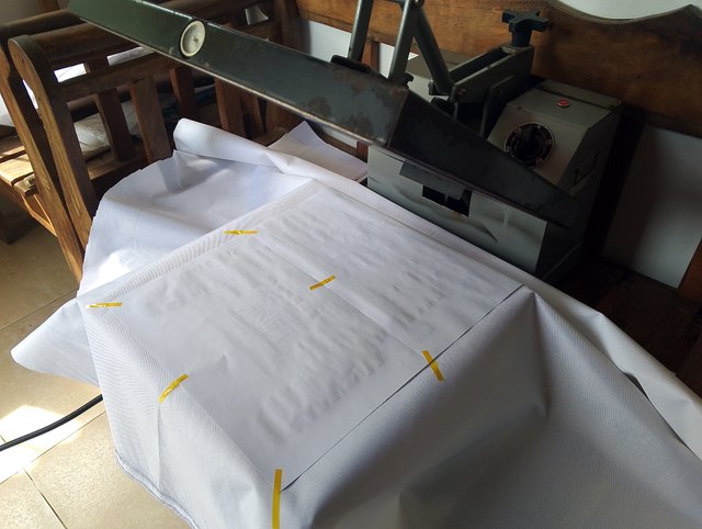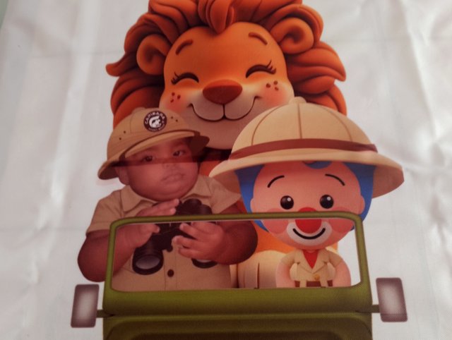 Luego llego la parte más desafiante que fue mover la tela hacia la máquina sin qué se rodarán las hojas de su sitio, tratamos de tener el mayor cuidado posible luego de poner la tela en la máquina mi papá la acomodo, luego la cerró y espero el tiempo necesario para que la imagen quede plasmada en la tela. Yo pues con nervios de que no quedara bien y esperando a que pasara el tiempo para que mi papá habrá la máquina y ver el resultado, transcurrido el tiempo llegó la hora de ver el resultado así que retiramos la cinta térmica y pues lamentablemente si se movió un poquito y quedó una pequeña marca en el rostro del niño y aunque esto no pasa todo el tiempo, no tenemos una maquinaria suficientemente grande para éste tipo de trabajo y tampoco quedo tan mal pues si me decepcionó un poquito porque pues cuando yo metí la mano para ayudar y pasó eso, así que no pase la prueba como sublimadora jajaja mejor se lo dejo a mi papa.