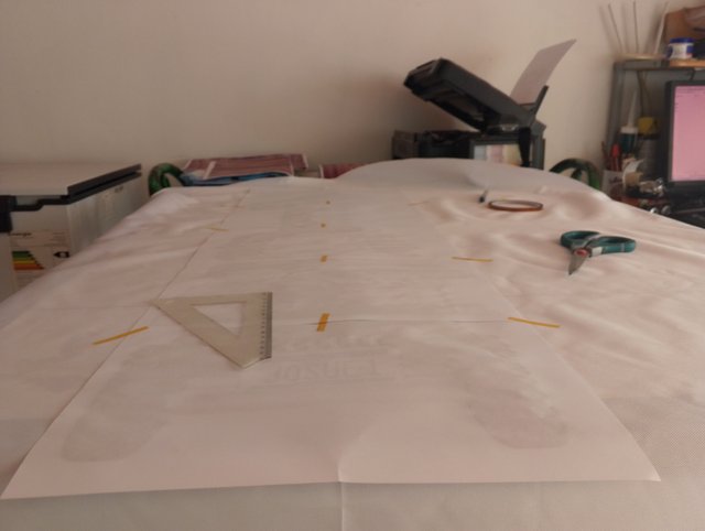 Seguido de eso se hicieron una medida para centrar bien la imagen en la tela para que quede en el centro y no quede chueca o con más espacio de un lado, luego se seleccionaron los fragmentos es decir las hojas algo así como armar un rompecabezas pero con las imágenes y de esa forma se arma el diseño ya que es un diseño muy grande comparado con el tamaño de las hojas o la impresora.