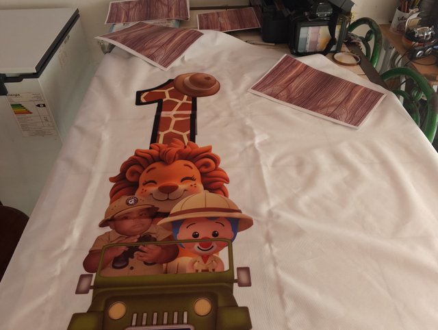 Primero se tomaron medidas para cortar la tela y que encajara con el tamaño perfecto de la base donde se va a colocar, luego se imprimieron las imágenes o el diseño para estamparlo en la tela.