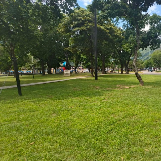 Además la plaza cuenta con áreas verdes y está rodeada de grandes árboles que brindan sombra y le dan un ambiente bastante fresco.