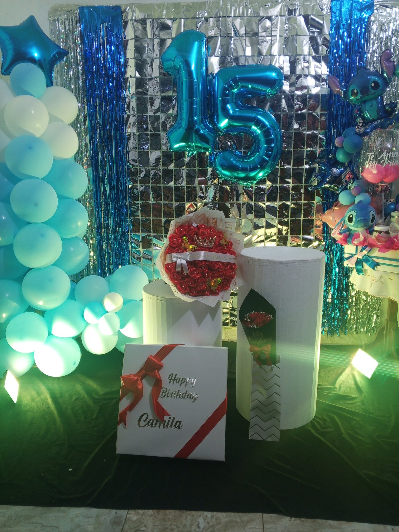 Toda esta semana he estado un poco ocupada primero haciendo un montón de rosas para un buquet que me habían encargado, luego crear una caja para meter varios productos que serían un regalo para la quinceañera y también haciendo un arreglo con peluches y otras cosas y por último hacer la decoración de la celebración de los 15 años de la niña que aunque era solo la familia estuvo muy bonito
