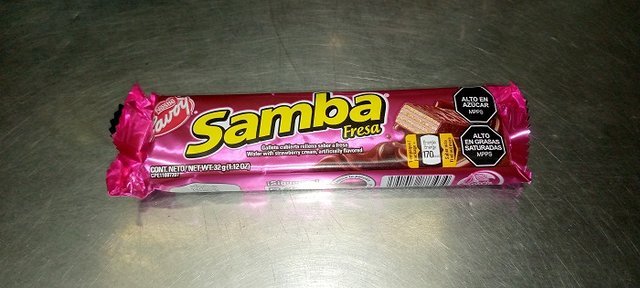 Que me perdonen los amantes de la samba de fresa, porque la verdad no la tolero con esa combinación de sabor; no sé por qué, pero la fresa con chocolate me repugna; todo lo contrario me sucede con la samba de chocolate.