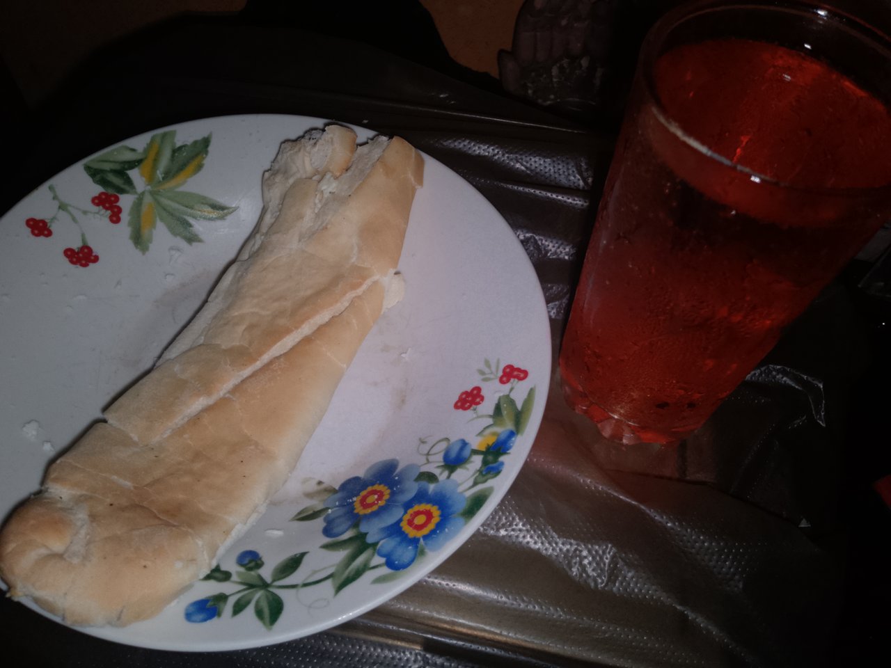 Bueno por fin llego a casa y enseguida preparo algo de cena rápido y sabroso, pan aplastado con un vaso de refresco de colita... para Hugo y para mi cenamos.