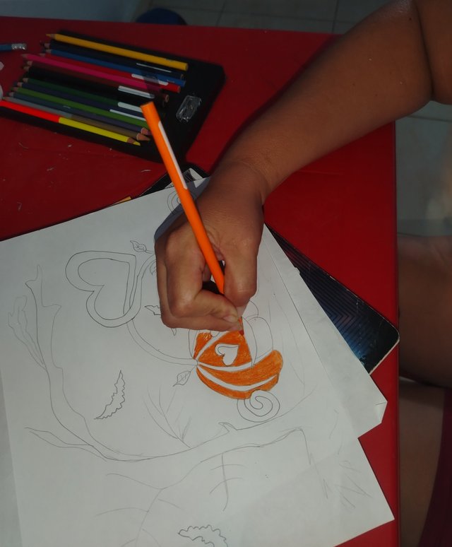 Este creacion lo escogi pensando en el amor antes que el terror, y es que muchos simbolizan la calabaza como algo tenebroso y es el diseño emblemático de Halloween entonces pensé en darle un toque diferente, como bien lo dije antes no soy muy buena para el dibujo pero hago el esfuerzo para que me salga bien.
