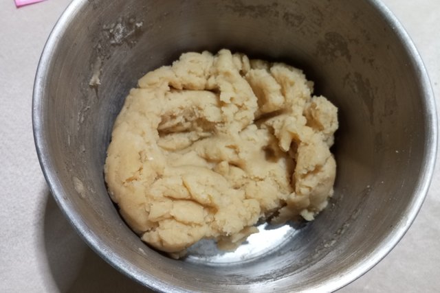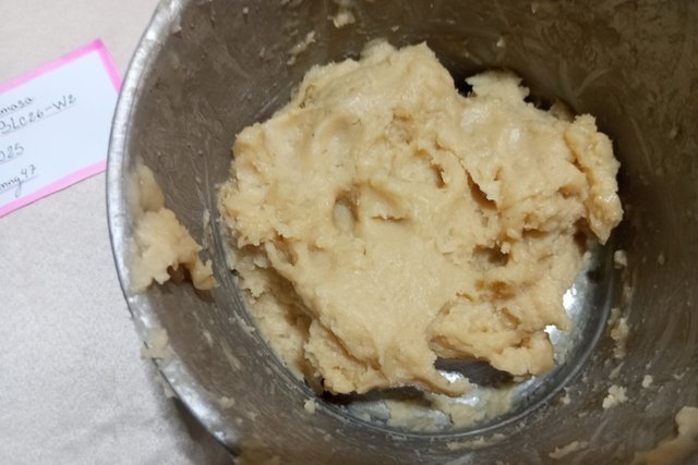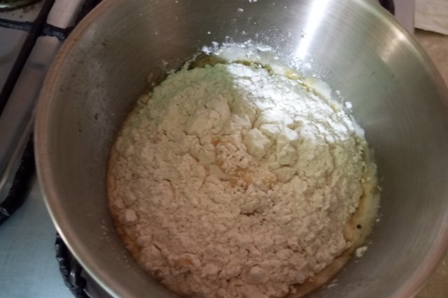 Cuando está hirviendo, se le agrega de inmediato la harina de trigo; revolvemos hasta que la masa se despegue de las paredes de la olla.