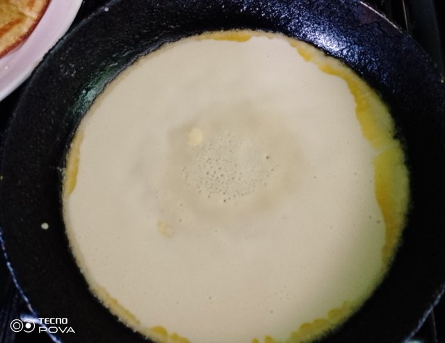 Seguidamente tomó un sartén mediano el cuál lavó bien y lo pongo al fuego a calentar colocó un poco de mantequilla para que no se me vaya a pegar la mezclar y dañar mi panqueca (panqueques) y así poder agregar la mezcla para hacer las Panquecas (panqueques)