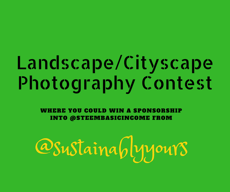 Show me some landscape or cityscape photography taken wherever you are, along with proof that the photo is your original work. At least two entries will be rewarded with a sponsorship into @steembasicincome!Please note that this is PG-13 contest. I should be able to review your contest entries with my wife and kids. Any entry that I deem inappropriate will not be considered for the contest.