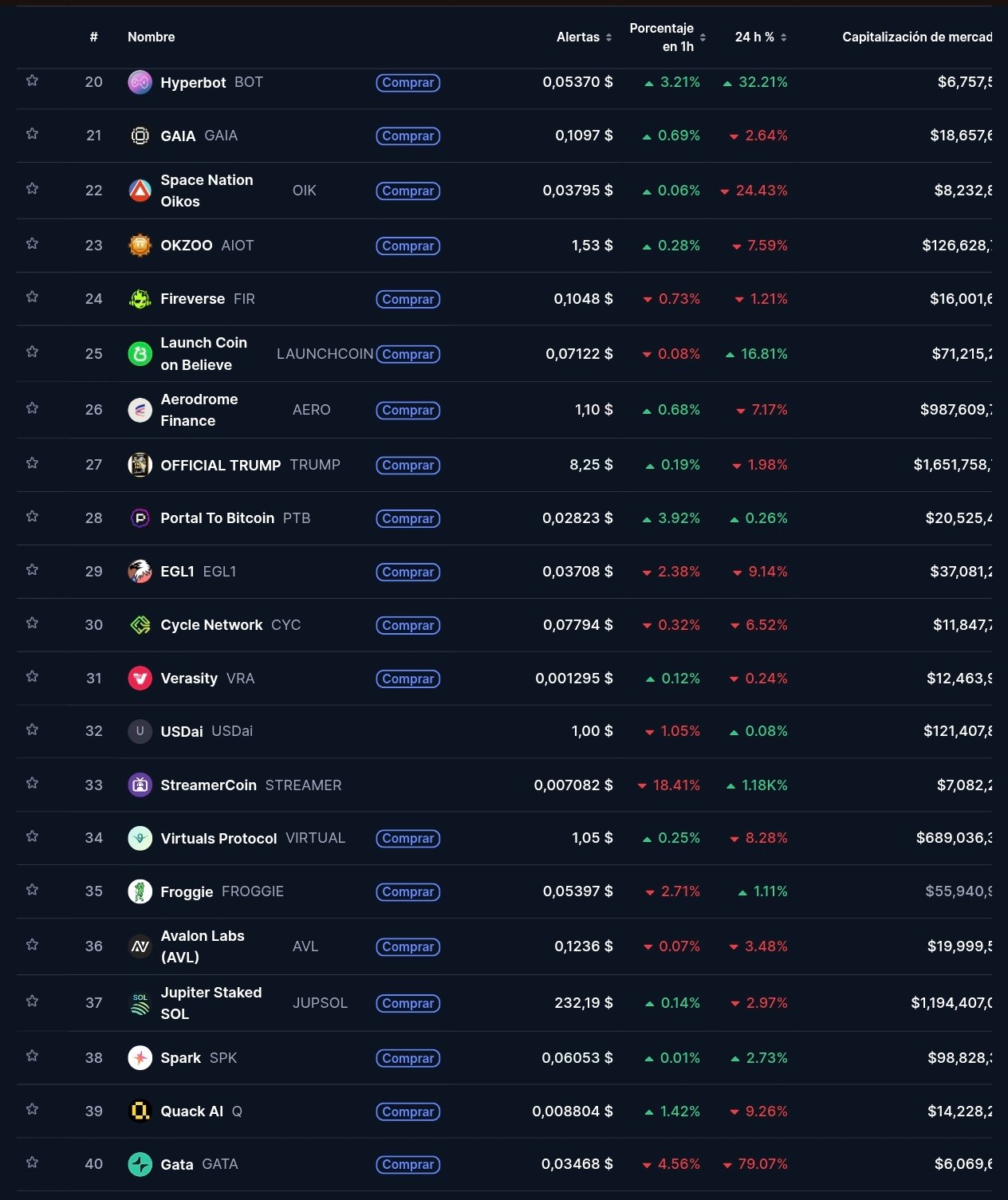 Top 21-40 della produzione di prezzi crittografici 04-09-25