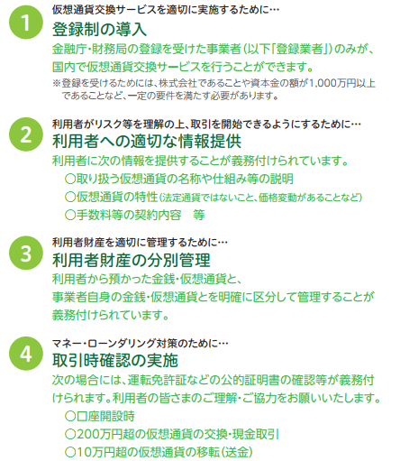 まずは2017/4/1に改正施行された資金決済に関する法律において、どのような登録要件が課されているかというと、要約して以下のような事項となります。