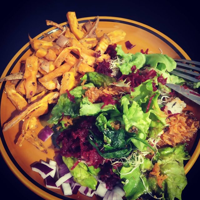 Frites de patates douces aux herbes de Provence et ma petite salade 😊