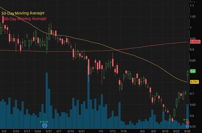 Molecular Data is another one of the penny stocks on Robinhood under $1, gaining steam right now. Heading into September, the company’s shares have managed to bounce back from 52-week lows of $0.37 to highs this week of nearly $0.48. This may only be an 11 cent move. But that represents a jump of nearly 30%. This emphasizes the potential that cheap stocks can hold. Obviously, that doesn’t come without just as much risk to the downside.