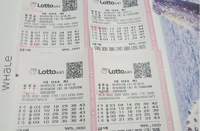 남은 번호로 5조합... 나머진 자동 구매를 하였습니다.