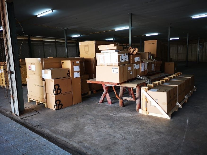 =>ของเข้ามาร้อยกว่าชิ้นครับ ของหนักๆทั้งนั้นเลย โต๊ะหินเป็นสิบ โซฟาใหญ่อีกสี่ลังไม้ ทีแล้วก็โต๊ะใหญ่อีกหลายชุด แต่ว่าแยกชิ้นมากก็จะขนง่ายหน่อย ที่เหนี่ยมากก็เพราะรีบคับ รถจอดกีดขว้างการจราจรชาวบ้านเขาคับ
