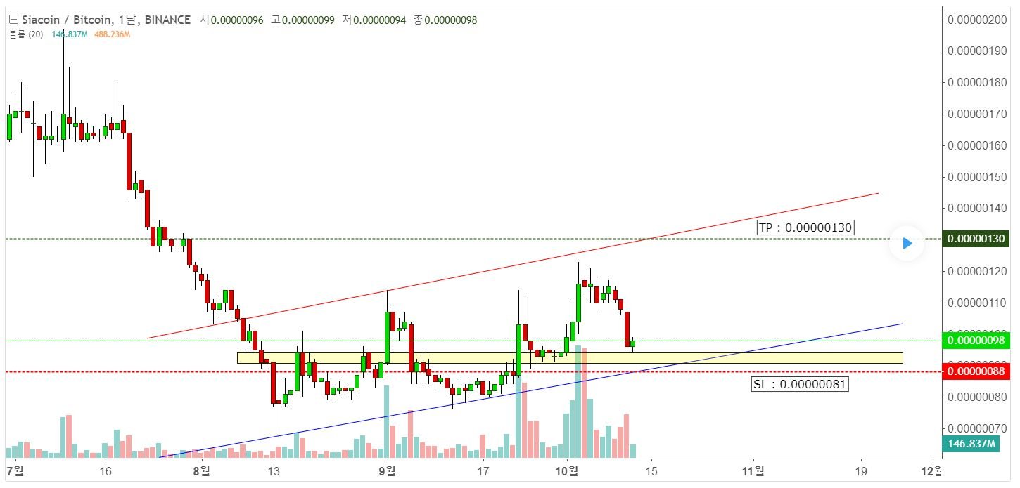 시아 - 트론과 비슷하게 추세대+수평 지지선 매매. TP는 저항선. SL는 지지선 이탈시.