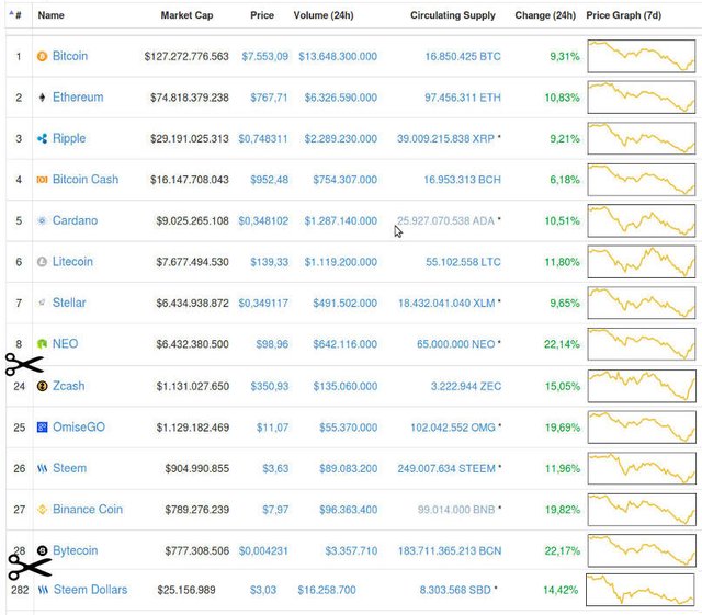 So auch bei den Dürre Fingers, New York. Mit drakonischen Sperrmaßnahmen, unter Zuhilfenahme der Brothers aus Wilmington, ist es gelungen, Harmony The Pegged One (SBD), den Paarlauf mit seiner süßen STEEMIE (STEEM) beizubiegen. Geneigten Hauptes bescheidet er sich unter die Aufgehübschte. Schau übrigens, was wirklich passiert, entgegen deinem natürlichen STEEM–Empfinden: Der STEEM ist stetig am Steigen. Bei allem Auf und Ab. Meine 73 SBD sind immer noch weg. Im Sinne von verschwunden sein, auf dem Weg nach Poloniex. Aber das macht gar nichts. Ich sitze doch an der Quelle! Nein! Tanzen sie nicht wieder wunderbar synchron über das Poloniexparkett, die beiden? So ein hübsches Bild von einem Paar und würde euer Schreiber dieser Zeilen seinen Gefühlen freien Lauf lassen, könnte er jauchzen vor Freude über eine derart gelungene Aktion vollkommener Börsendisziplin. Allein, wäre da nicht – hört den heutigen Spruch des unbekannten Orakels – der Running Gag vom Steem wird geschehen, weil es das Karma des SBD ist. Er hängt den STEEM wieder ab. Irgendwann. Ganz sicher. Darauf musst du sparen. Klar ist das riskant! Du sitzt an der Quelle, Miner!