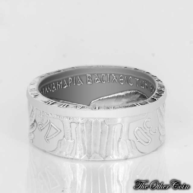 Es handelt sich um einen selbstgefertigten Ring aus einer 30 Drachmen Münze von 1964. Das Herstellen von Münzschmuck ist ein Hobby von mir und ich werde in nächster Zeit auch einmal ein paar Videos erstellen und Berichte schreiben wie man solche Ringe herstellen kann