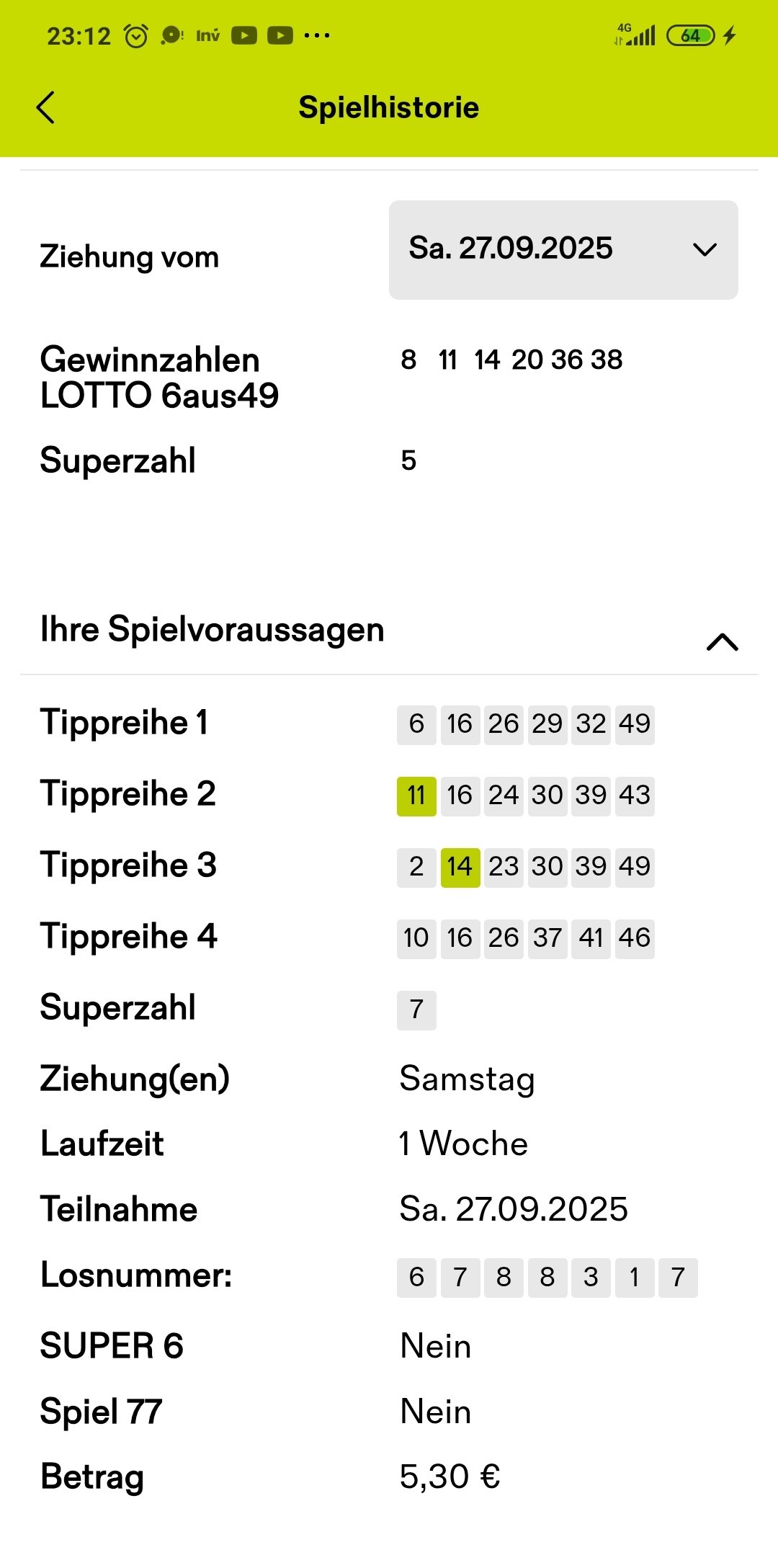 Somit klar daneben. Die monatelange Pechsträne bei 6 aus 49 will scheinbar einfach nicht enden...☘️