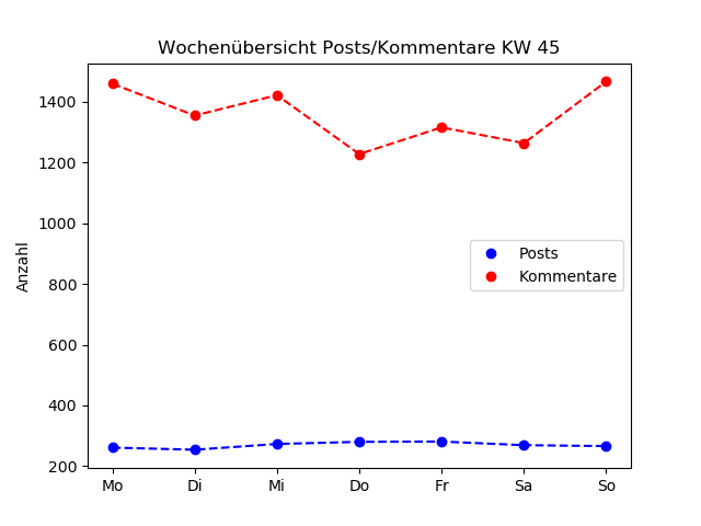 Wochentag | Posts | Kommentare | Diagramm |