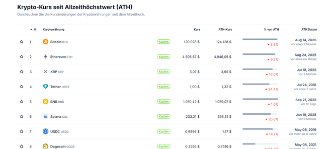 Ich habe auf Coingecko eine Übersicht der ATHs gefunden und wollte das mal teilen. Mir war die Seite noch nicht bekannt.