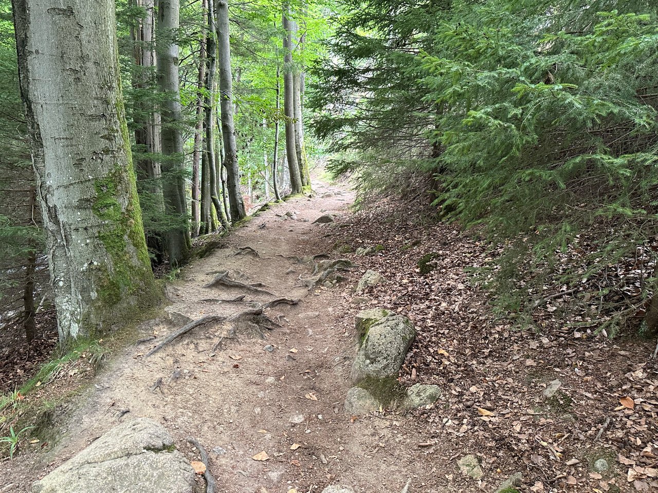 Es war sich also schon 16:00 Uhr als ich startete. Das Wetter war perfekt, erfrischend kühl und mit reichlich Sonnenschein. Der Wald war rammelvoll mit Leuten, alle mehr oder weniger talwärts unterwegs.